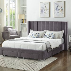 Soyez le premier à laisser votre avis sur “BED – GREY VELVET WITH STORAGE DRAWERS #5310”